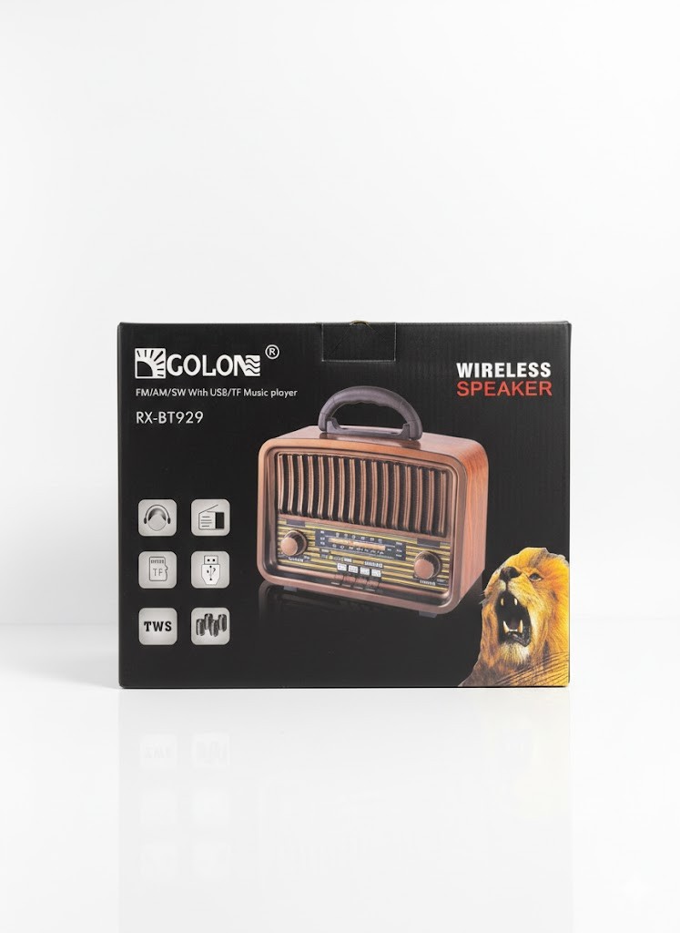 - راديو MD-929-S (ريترو/متعدد النطاقات): راديو كلاسيكي يعمل بـ 3 نطاقات (FM/AM/SW)، يدعم البلوتوث، وUSB، وكروت TF. يتميز ببطارية 1200mAh، ولوحة شمسية للشحن، ومصباح يدوي.