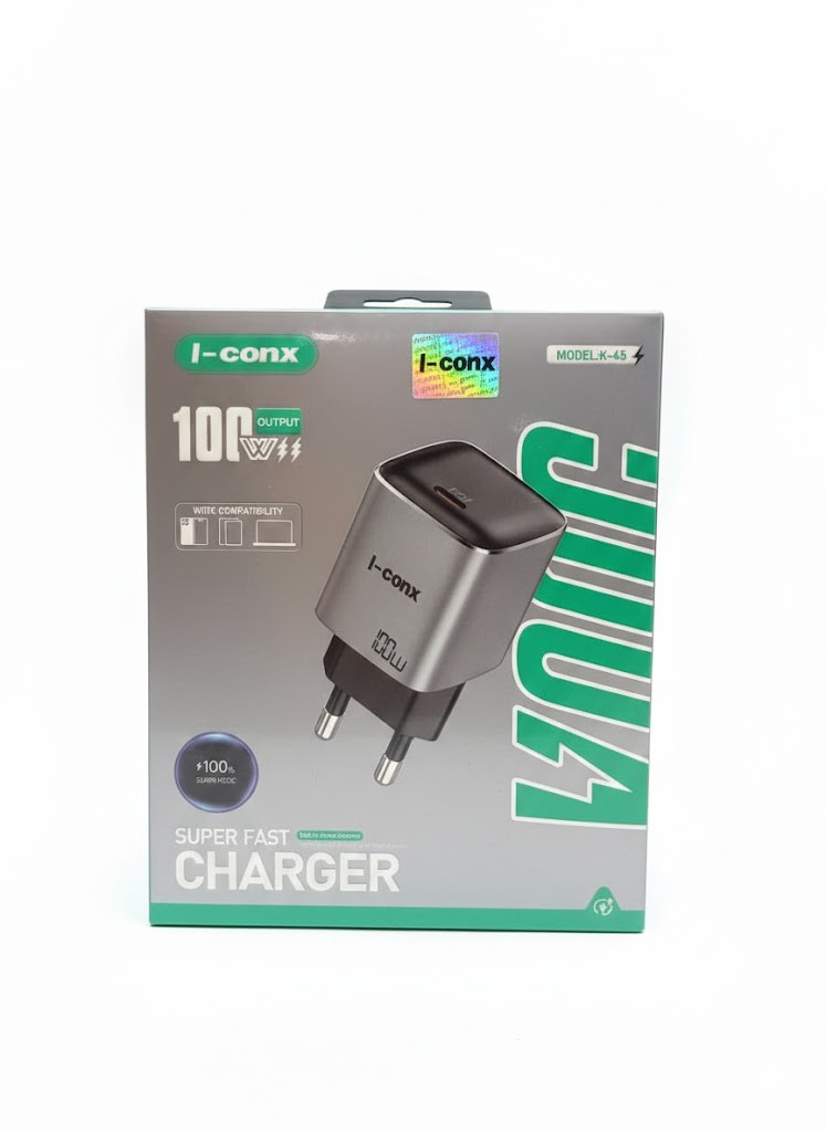 شاحن I-CONX K45 PD هو شاحن حائط فائق السرعة بقدرة 45 واط يستخدم تقنية Power Delivery (PD) وشرائح ذكية لشحن مجموعة واسعة من الأجهزة بكفاءة وأمان. يتميز بتصميم مدمج وعادة ما يأتي مع كابل لضمان التوافق التام.