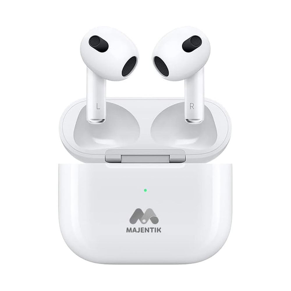 "إيربودز ماجيستك 3" قد يشير إلى سماعات "Apple AirPods 3" أو سماعات "MAJENTIK" المنافسة، حيث توفر "Apple AirPods 3" تجربة صوتية مكانيّة وتتبع ديناميكي للرأس، مع صوت مخصص وموازنة صوت متكيفة، بالإضافة إلى تصميم مقاوم للعرق والماء (تصنيف IPX4) وبطارية تدوم طويلاً مع علبة شحن. من ناحية أخرى، توفر سماعات "Majentik Buds Pro ANC" ميزات مثل عزل الضوضاء النشط (ANC)، وعمر بطارية يصل إلى 4 ساعات، ودعمًا للتحدث، وصوتًا نقيًا، مع ضمان لمدة عام.