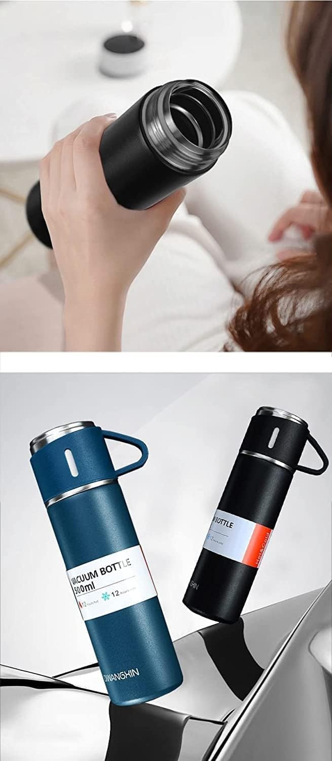 الـ CA&KO|Premium Stainless Steel Travel Flask with 3 Cups هو ترمس عازل بتفريغ الهواء بسعة 500 مل مصمم للاستخدام أثناء التنقل، ويحافظ على المشروبات ساخنة أو باردة بفضل بنيته المصنوعة من الفولاذ المقاوم للصدأ بدرجة 304.